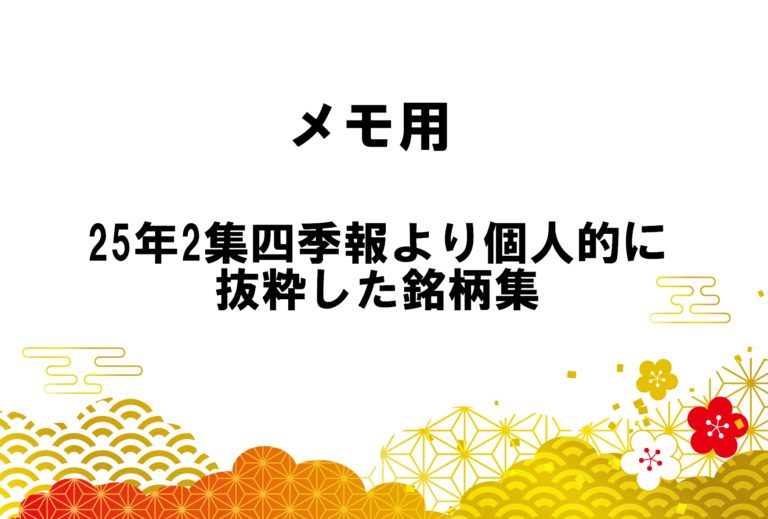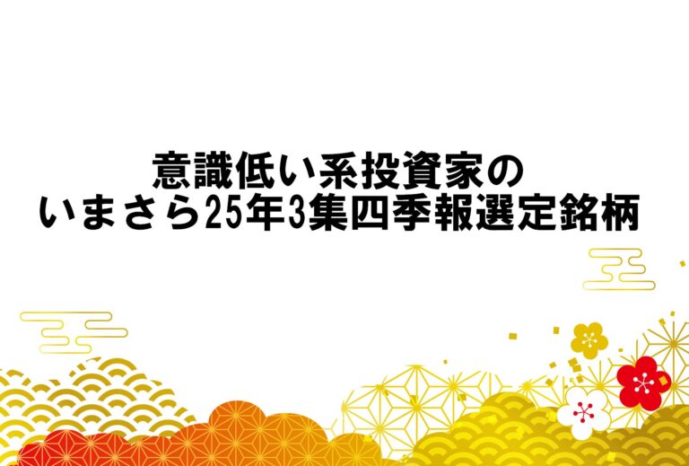 意識低い系投資家のいまさら25年3集四季報選定銘柄